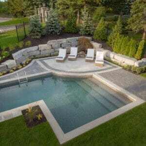 If you want a risk-averse pool type that gets the job done, look no further than the rectangle. It is classic and timeless for a reason, because it offers a blank slate for all of the amenities you might need. You can easily add swim-up seating, a wading area, and slip-resistant steps to easily get in and out. These are also the easiest pools to cover, by far.